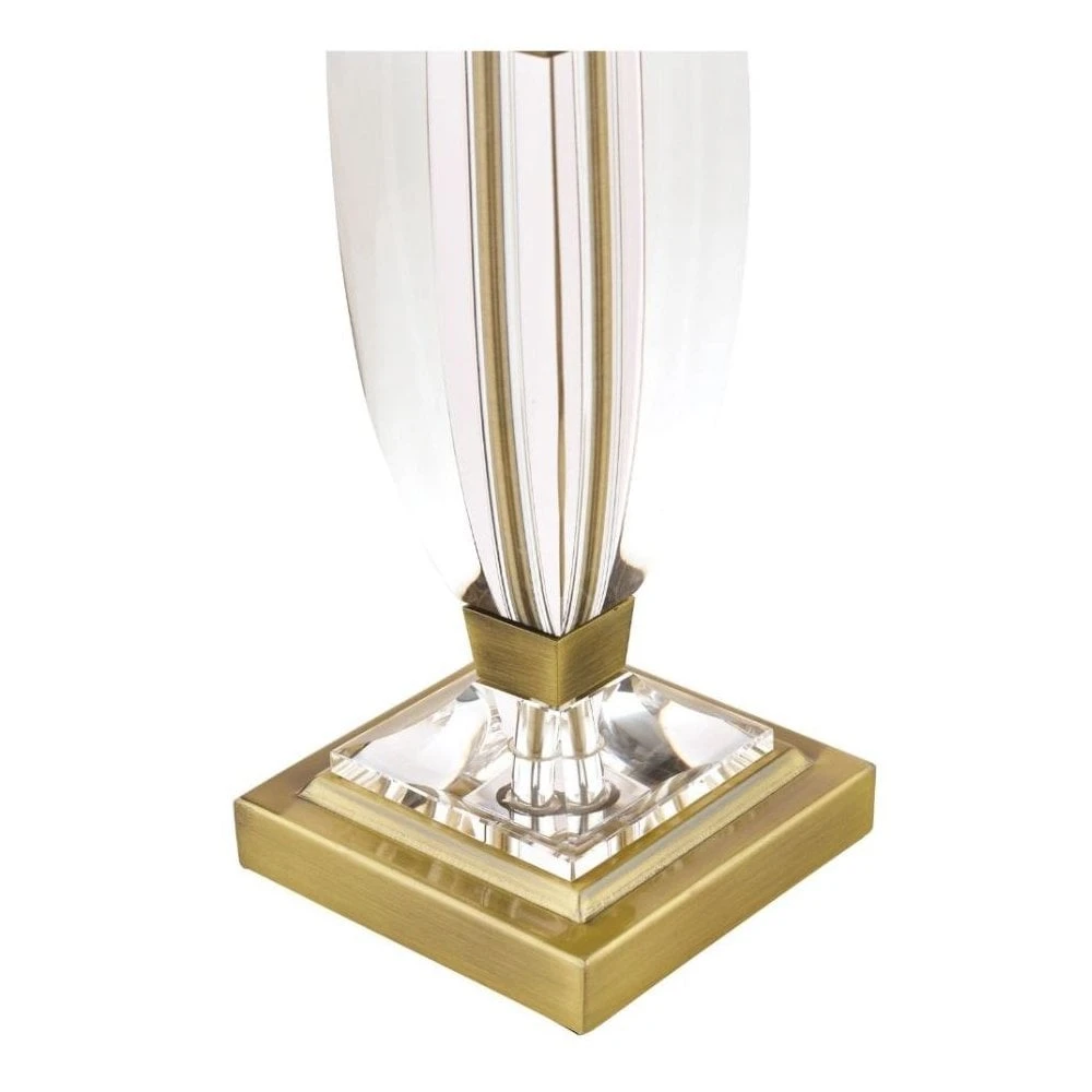 The Laura Ashley Carson table lamp is a rather grand statement table lamp with a clear, cut crystal body, hand polished to give a smooth surface. The metal base supports the column-shaped body, which is reminiscent of the shape of a slender classical vase. This stylish table lamp has an antique brass finish.Â