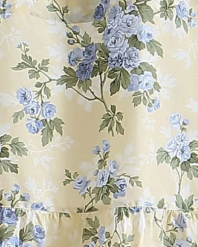 - This Laura Ashley Valance Features A Yellow Buttercup Ground With Blue Floral Motifs