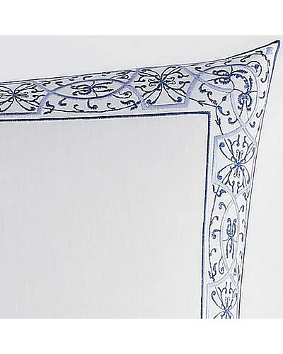 - Design details: deliver a sense of historical elegance to your bedroom with this decadent european sham. white porcelain and blue embroidery have been a decor favorite for hundreds of years, their serene juxtaposition an eye catching way to imbue your space with a sense of luxury and refinement. this sham has an envelope closure that stays securely in place and slips off for quick and easy cleaning.