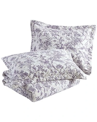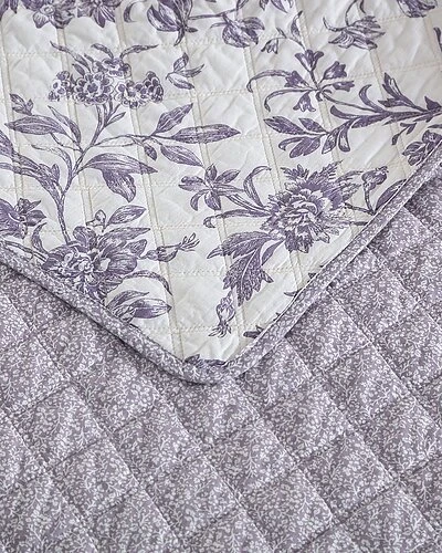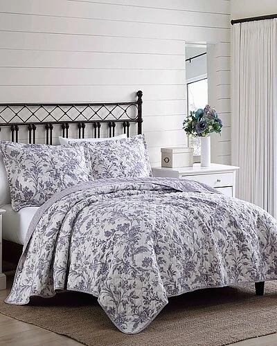 - Design details: this is not your typical laura ashley floral. the delila quilt set offers a clean two-tone floral design. a medium plum floral design is printed over a white ground. the quilt reverse has a floral vine print on a plum ground. let the 100% cotton materials surround and comfort you the next time you crawl into bed.