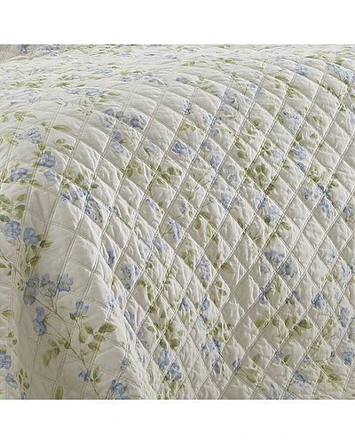 - Design details: welcome spring with the fresh, pretty fawna floral quilt set from laura ashley. the quilt features a soft blue and green floral pattern on white and reverses to a white floral design on light blue. prewashed for softness, this 100% cotton quilt set becomes cozier with each wash. filled with a blend of 80% cotton/20% poly it is light weight yet can be layered for year-round use. set includes one quilt and two shams for full/queen and king size, one sham for twin size. machine washable for easy care