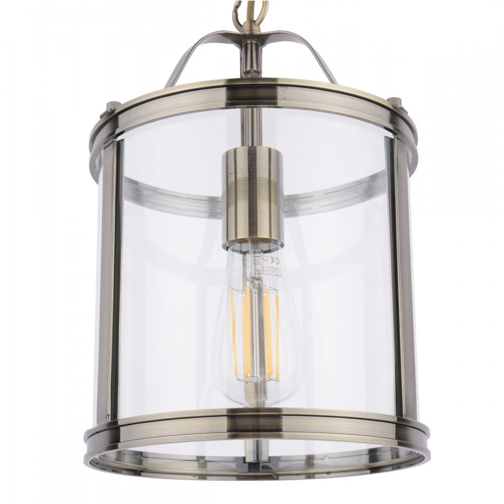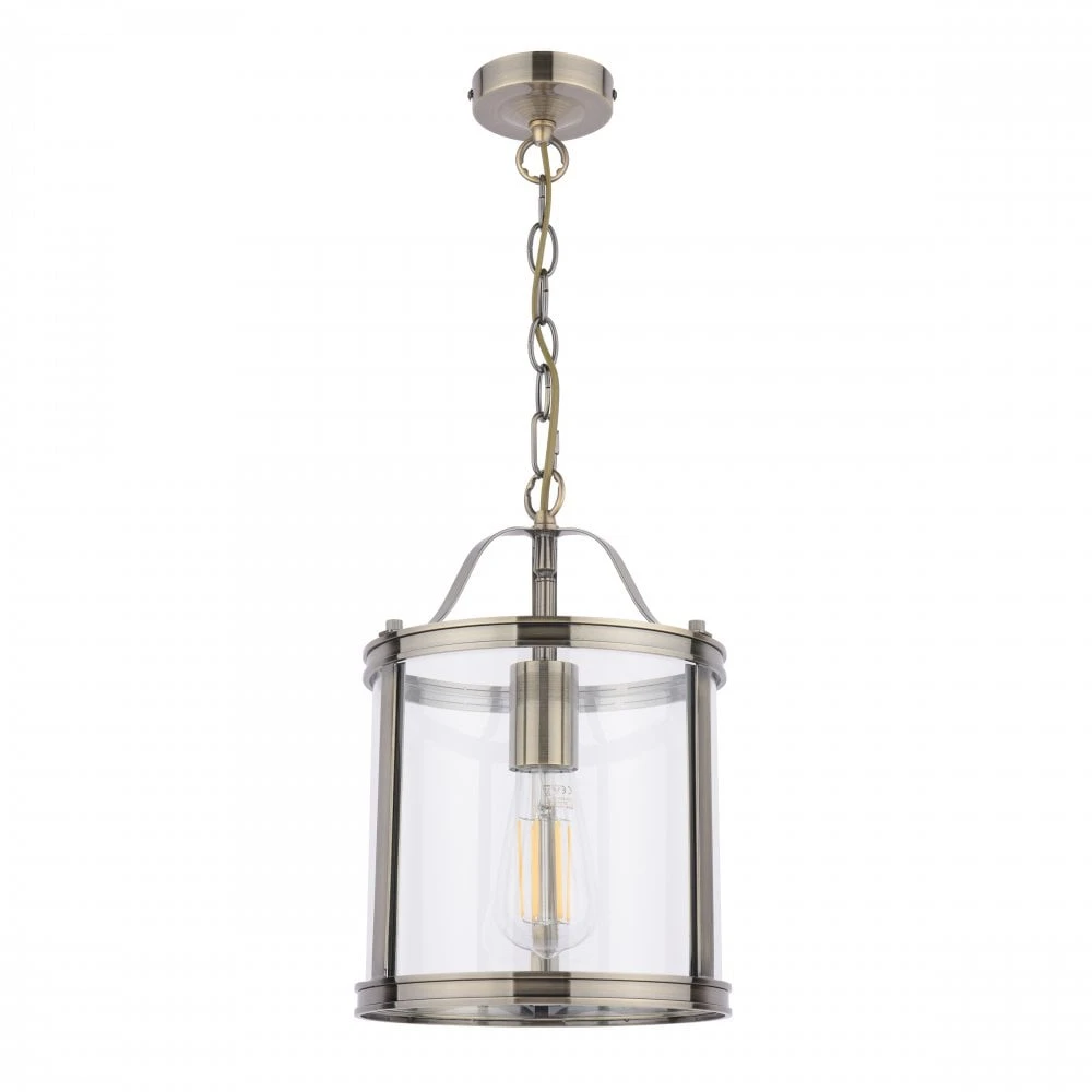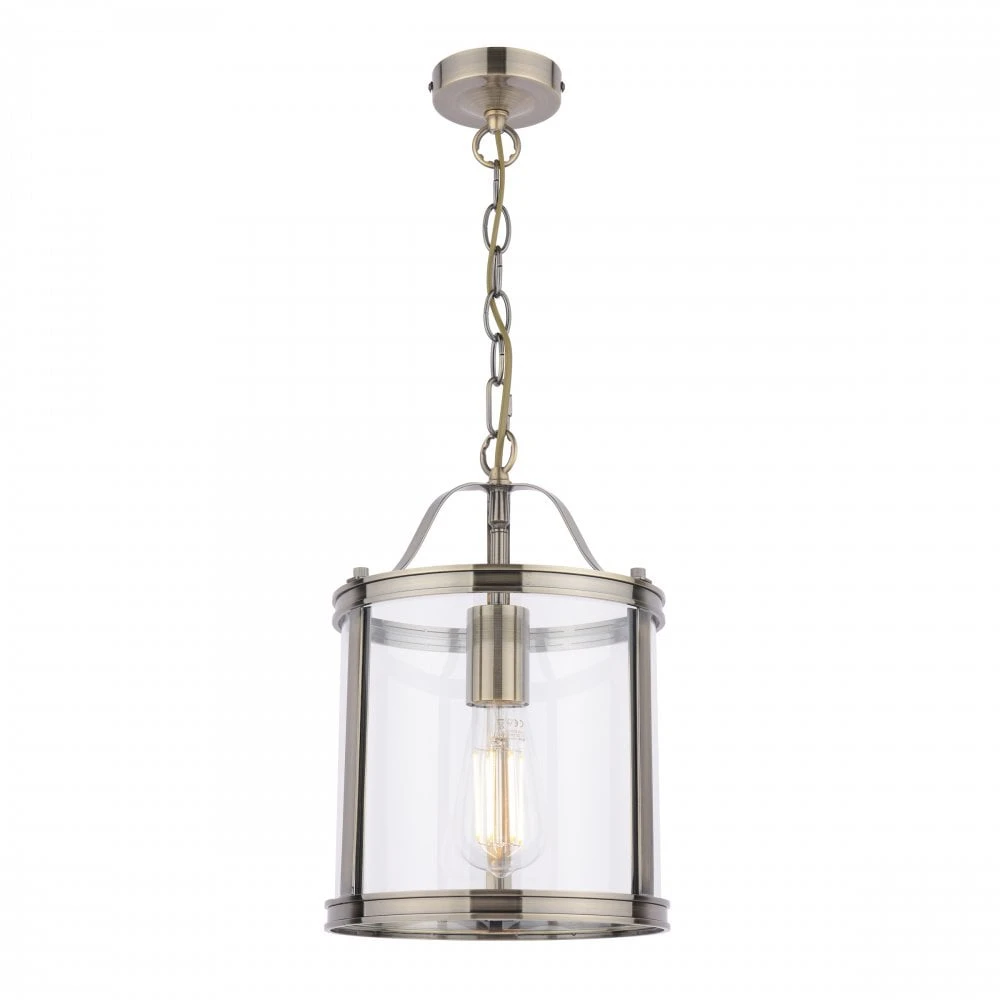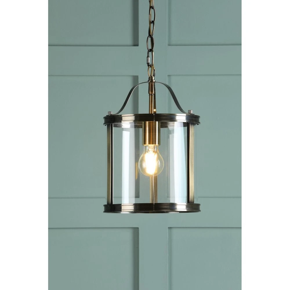 A modern ceiling lantern in an antique brass finish with panels of clear glass. Timeless and elegant, this will work as well in a period property to add a modern touch, as it would in a contemporary home.