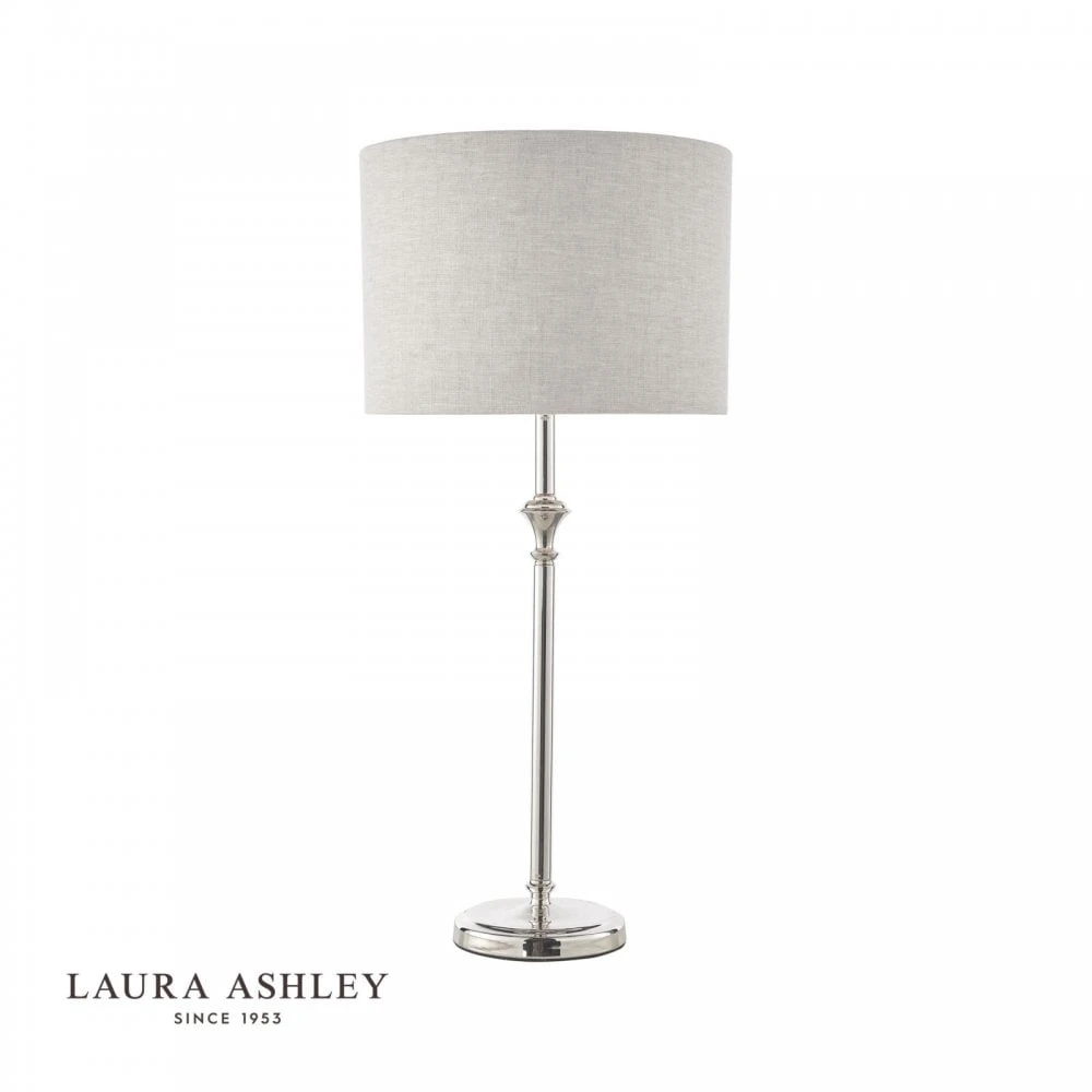 The Laura Ashley Highgrove table lamp, a contemporary interpretation on an English historical design in a classy polished nickel finish, is a future classic.