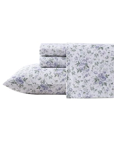 - Design details: sateen cotton sheets are smooth, sleek and soft, set includes a fully elasticized fitted sheet- premium encased elastic runs continuously around all four sides to keep the fitted sheet in place; 15″ fitted sheet pocket depth – fitted sheet fits mattress up to 18″,pillowcases have a standard opening with 4″ hem, oeko-tex standard 100 tested and certified to contain no harmful substances. better for you and for the environment, laura ashley lilian sheet set combines purple blossoms with sage green leaves printed on white ground