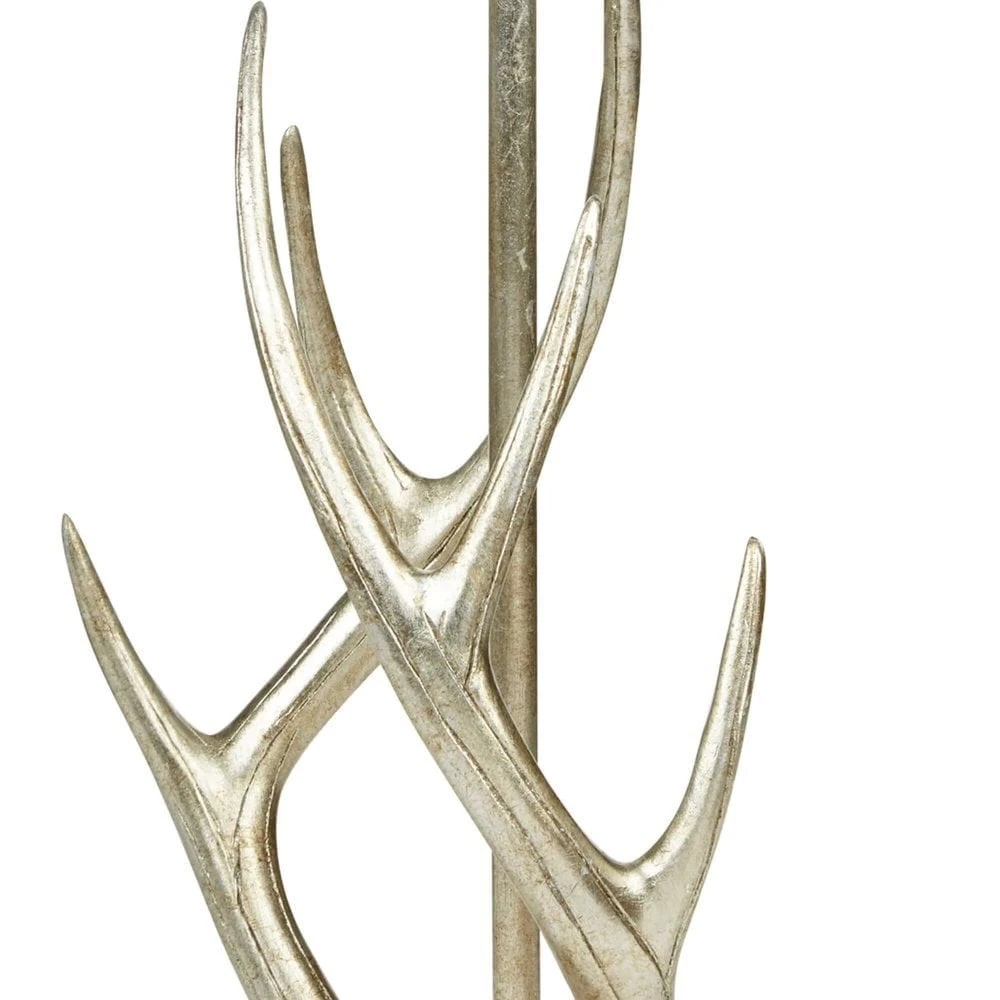 A stunning, textured, table lamp by Laura Ashley in champagne gold. The Mulroy table lamp features a unique antler design mounted on a vintage textured base and a matching bar that rises to the lamp holder. This contemporary interpretation of a nostalgic style thatw ill be sure to add character and style to your home.