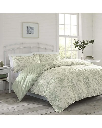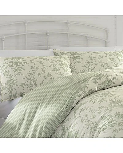 - Design details: lightweight with a smooth soft feel, duvet cover features button closure and four inner corner ties to keep your duvet insert in place; duvet cover insert not included, duvet has button closure, included standard/king and euro shams have 2 piece envelope back closure, duvet and sham face are a timeless sage green floral toile printed on ivory ground; duvet and sham reverse, euro sham and square pillow are sage and ivory stripe