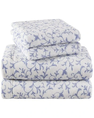 - Design details: two sided plush; super soft and cozy feel- brushed finish for added softness, set includes a fully exposed elastic on inside of fitted sheet; pocket sizes: 12″ fitted sheet pocket depth- fitted sheet fits mattress up to 15″,pillowcases feature side openings for easy removal of pillow inserts, certified by oeko-tex, an international association focused on textile safety and sustainable production, laura ashley plush fleece sheet sets are available in both solid grey and blue as well as a printed periwinkle blue classic scroll design and a delicate grey floral, both prints on white ground