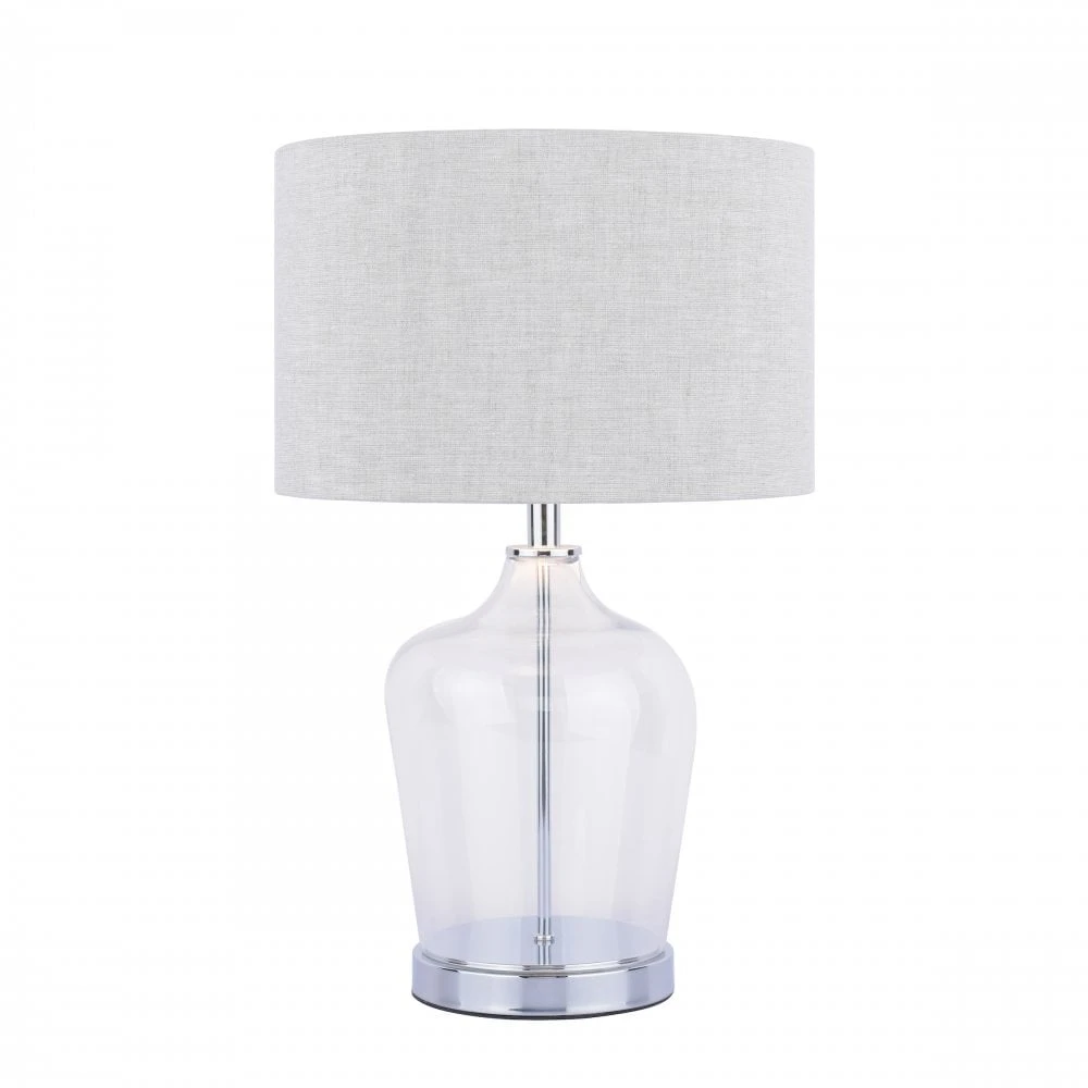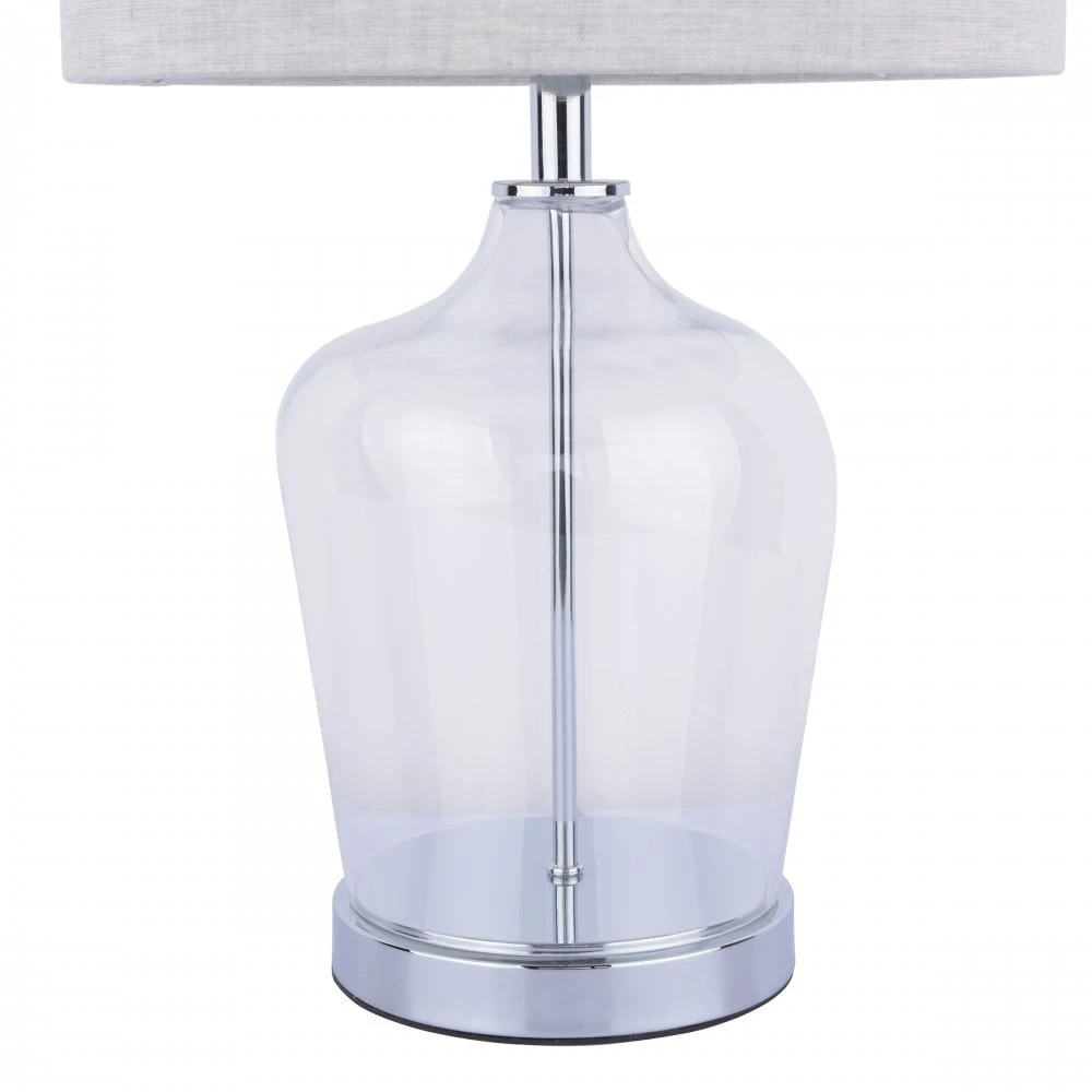 This beautiful Laura Ashley Ockley table lamp features a touch-on/off polished chrome plinth beneath a clear glass vase. With a 3-stage touch switch. Simply touch it once to turn it on, again to dim it, and then to turn it off. Paired with an elegant grey shade with a metallic inner. A perfect stylish table lamp for any room.