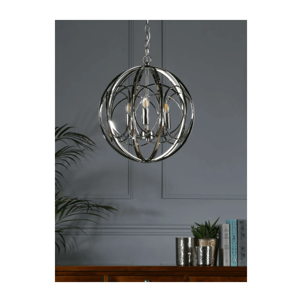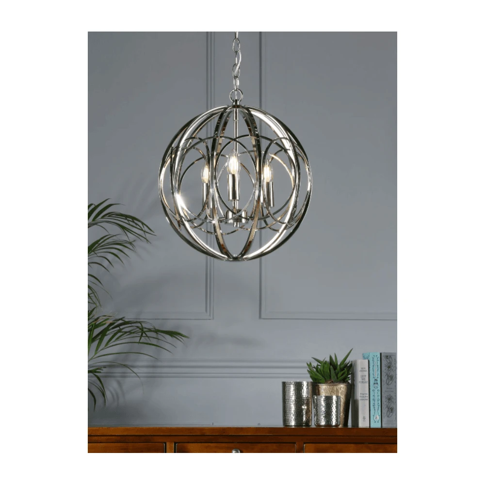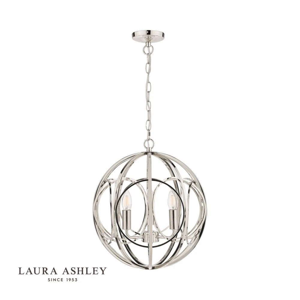 Laura Ashley’s completely ageless Orbital pendant light is a contemporary spin on a classic chandelier. This magnificent globe lamp is formed by interlocking circles in a refined polished nickel.