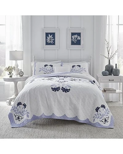 - Design details: make an elegant statement with the stunning laura ashley rosaleen quilt. this timeless design includes classic floral stencil motifs in shades of soft blue and indigo on a crips white ground. reverses to the matching soft blue ditsy floral print for a romantic look. 100% cotton, prewashed for softness and becomes cozier with each wash. filled with a blend of 80% cotton/20% poly, it is light weight yet can be layered for year-round use. quilt and shams each sold separately. machine washable for easy care