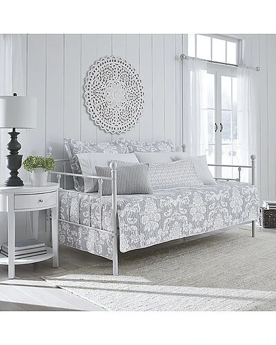 - Design details: daybed set is prewashed for softness and lightweight for year-round use, can be layered, quilting fill: 80% cotton & 20% polyester; blended for durability, shams and pillow cover have two piece envelope closure, traditional damask floral print in white on medium grey