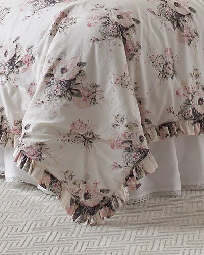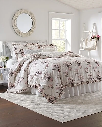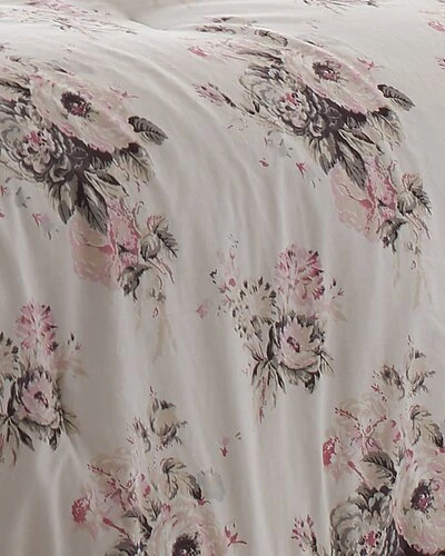 - Design details: turn on the charm with this elegant, yet casual, floral comforter-sham set from laura ashley bedding collection. updated in a modern palette of blush pink, neutral and grey with charming ruffles all around, this classic pairing will transform your bedroom into a relaxing retreat.