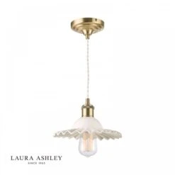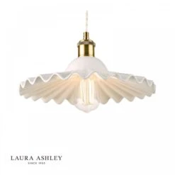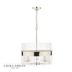 Laura Ashley BRADSHAW Table Lamp Polished Nickel & Ribbed Glass With White Tapered Drum Shade