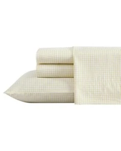 Laura Ashley Serendipity Gingham 100% Cotton 300 Thread Count Sateen Sheet Set Home